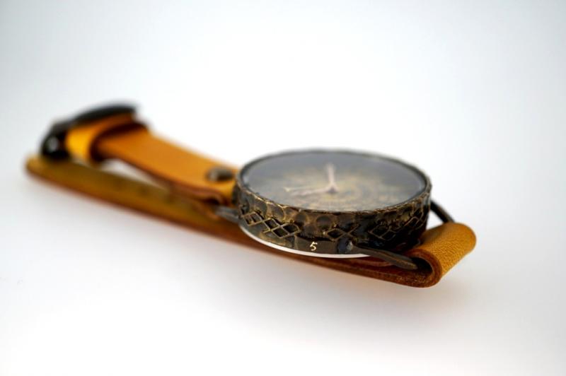 光のあたる角度によって、文字盤の反射角が変わる時計。