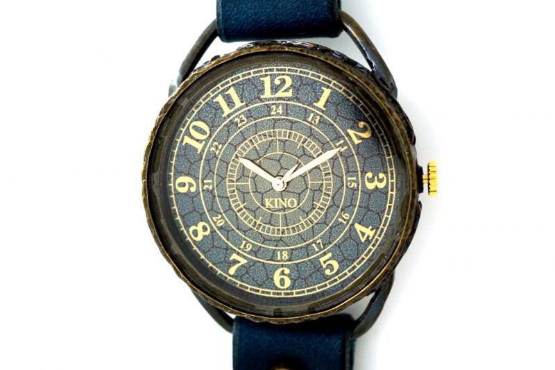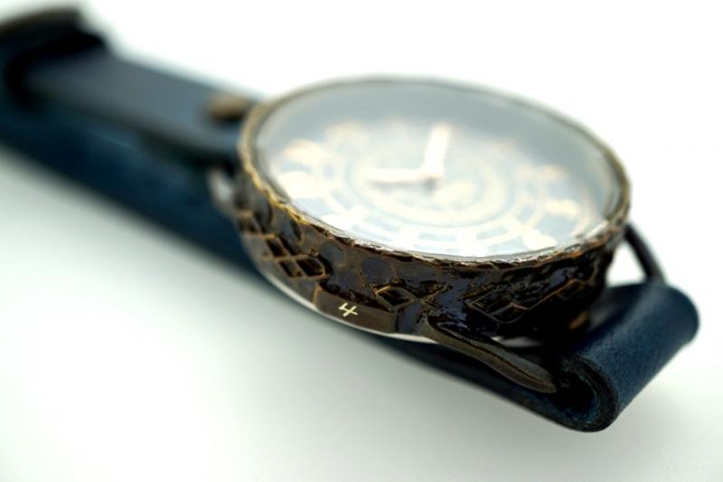 ひび割れた鮮やかな文字盤。ベルトカラーに合わせて制作。