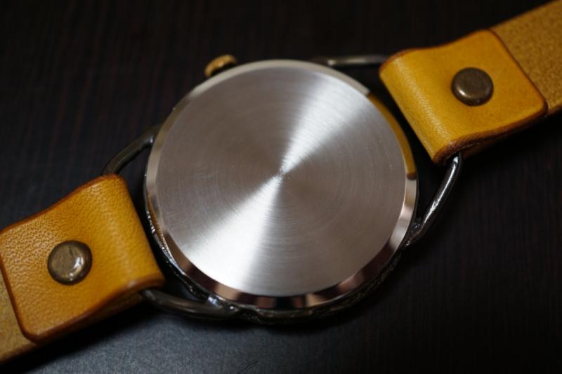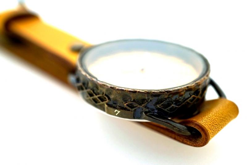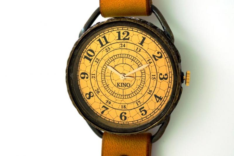 ひび割れた鮮やかな文字盤。ベルトカラーに合わせて制作。