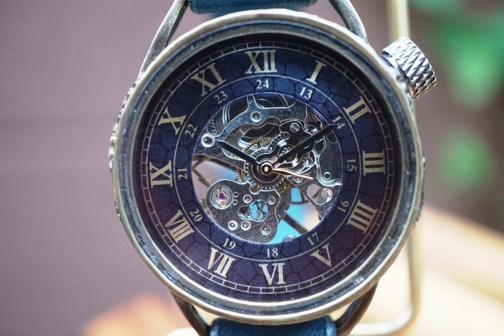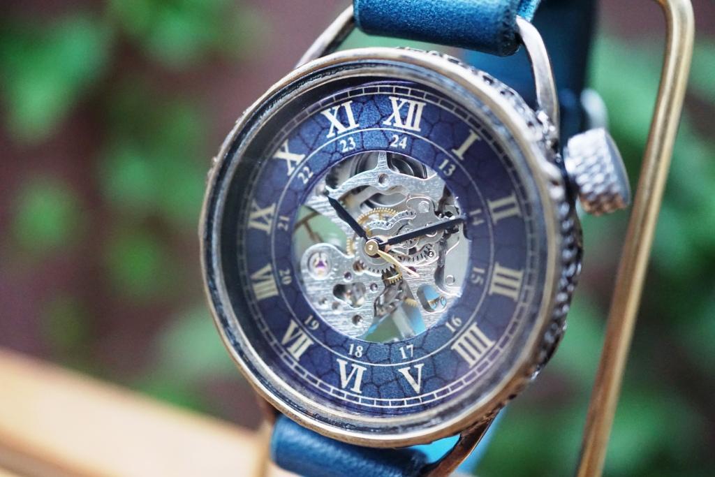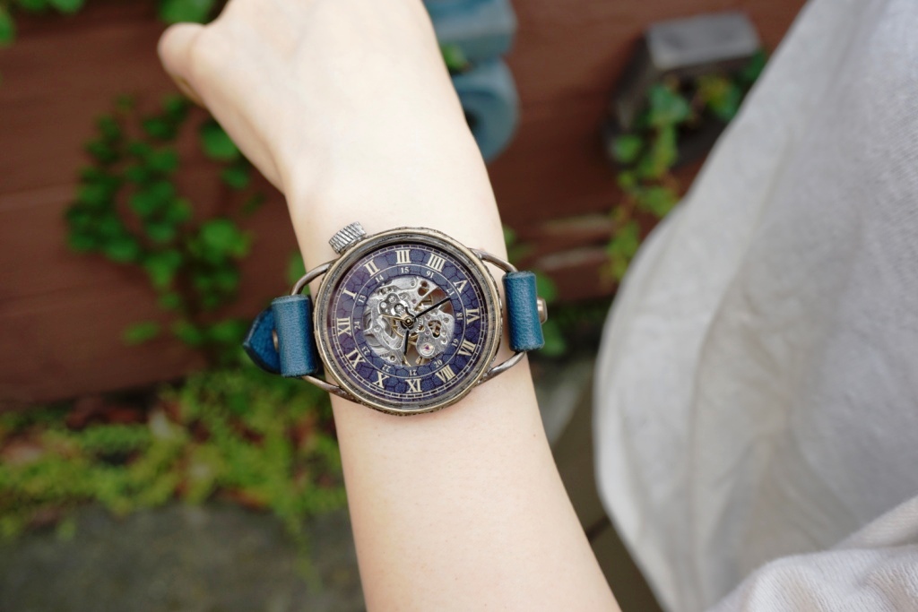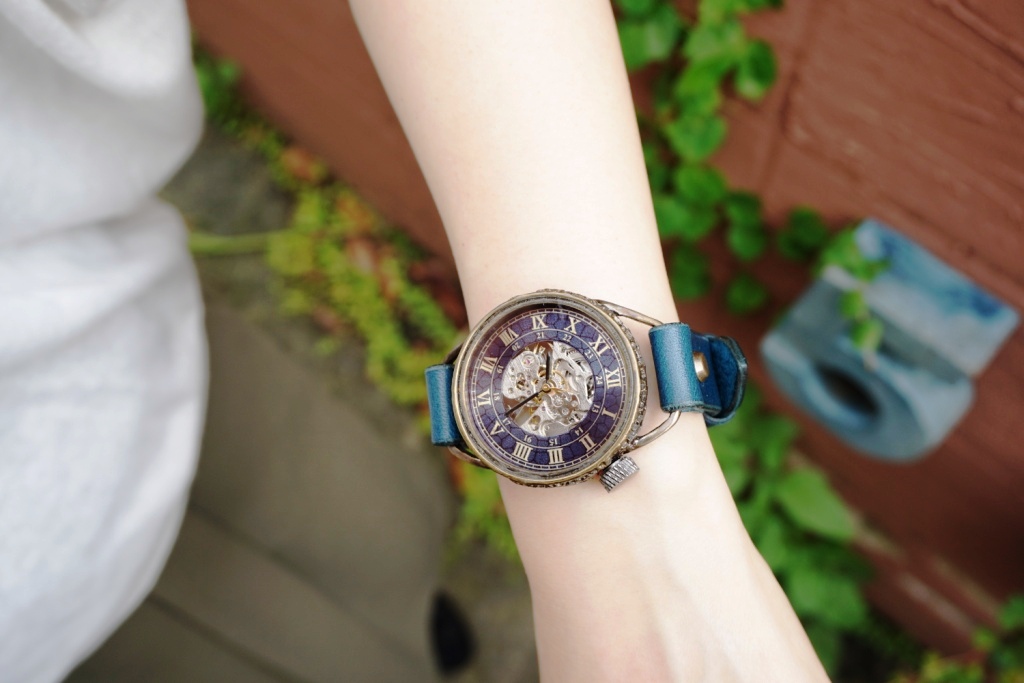 一つ一つ手作りで仕上げた偏光文字盤に機械式ムーブメントを搭載。