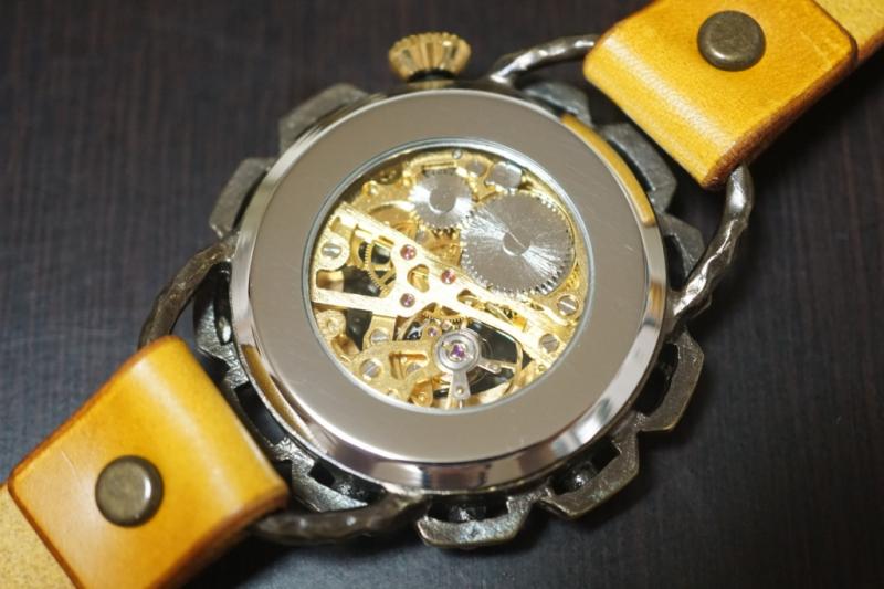 文字盤は偏光文字盤を使用し、その上に立体的な歯車で構成。