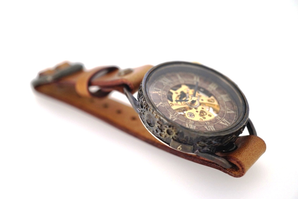 光のあたる角度によって、文字盤の反射角が変わる時計。