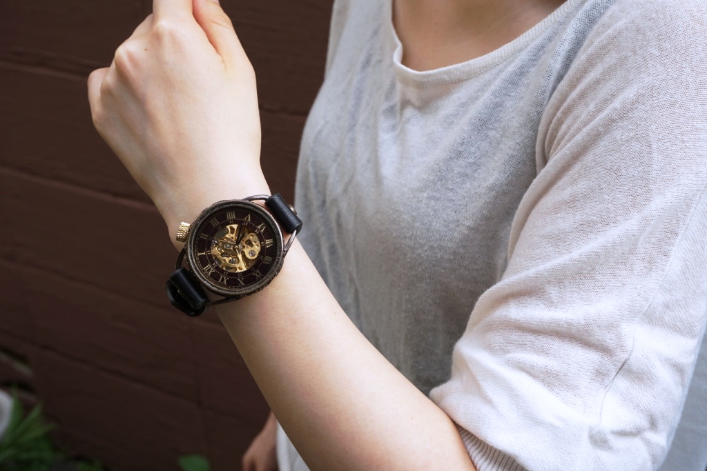 一つ一つ手作りで仕上げた偏光文字盤に機械式ムーブメントを搭載。