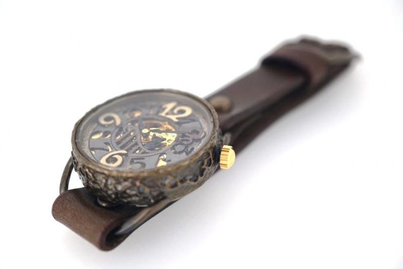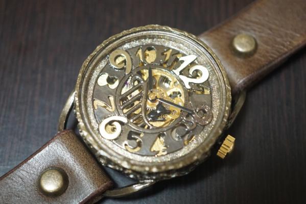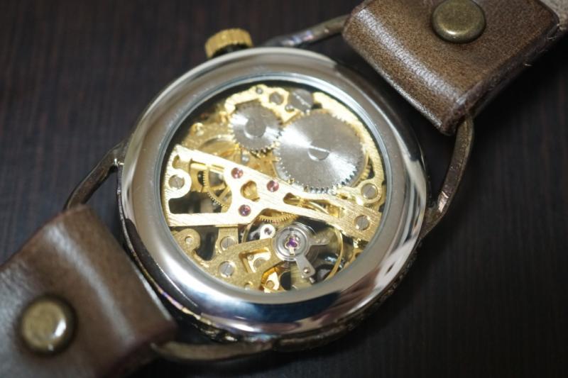 掘り抜いた数字の下には、機械式ムーブメントが見える。