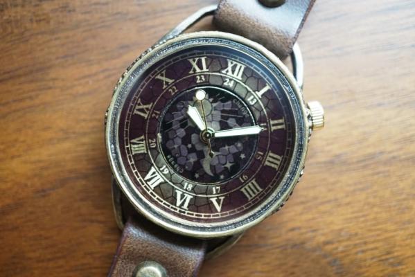 一つ一つ手作りで仕上げた偏光文字盤にサンアンドムーン機能を搭載。