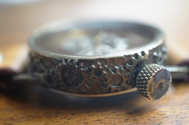 枠のサイドには歯車をデザイン。
