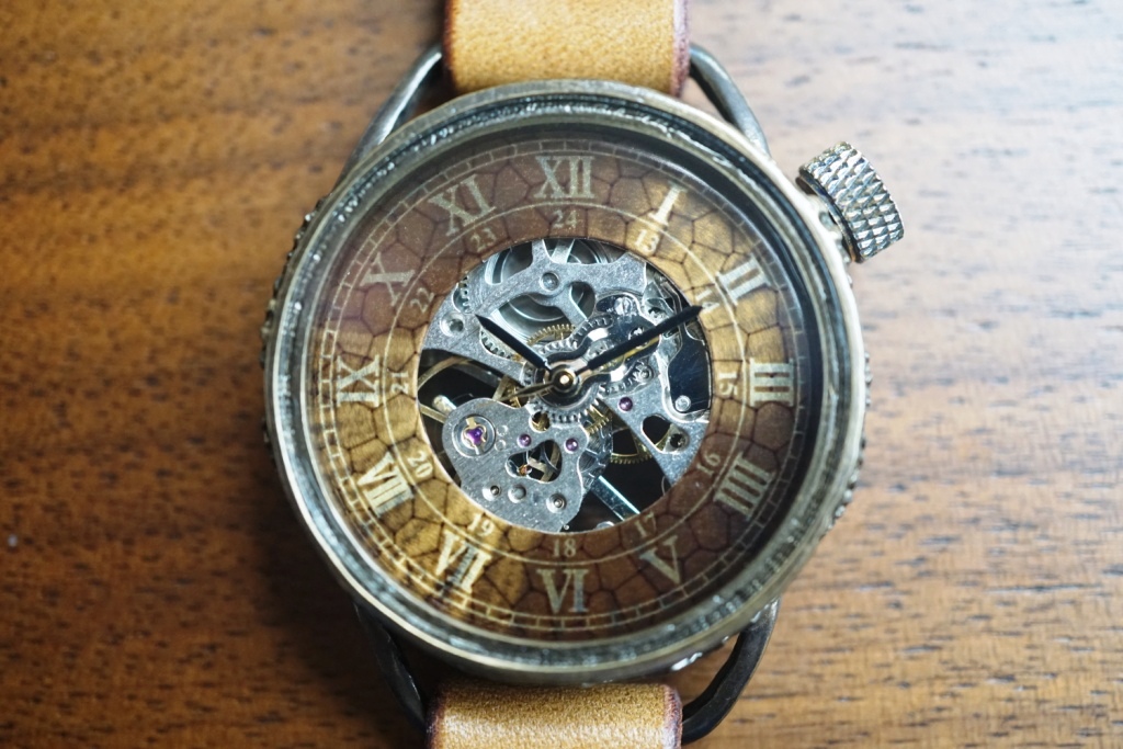 一つ一つ手作りで仕上げた偏光文字盤に機械式ムーブメントを搭載。