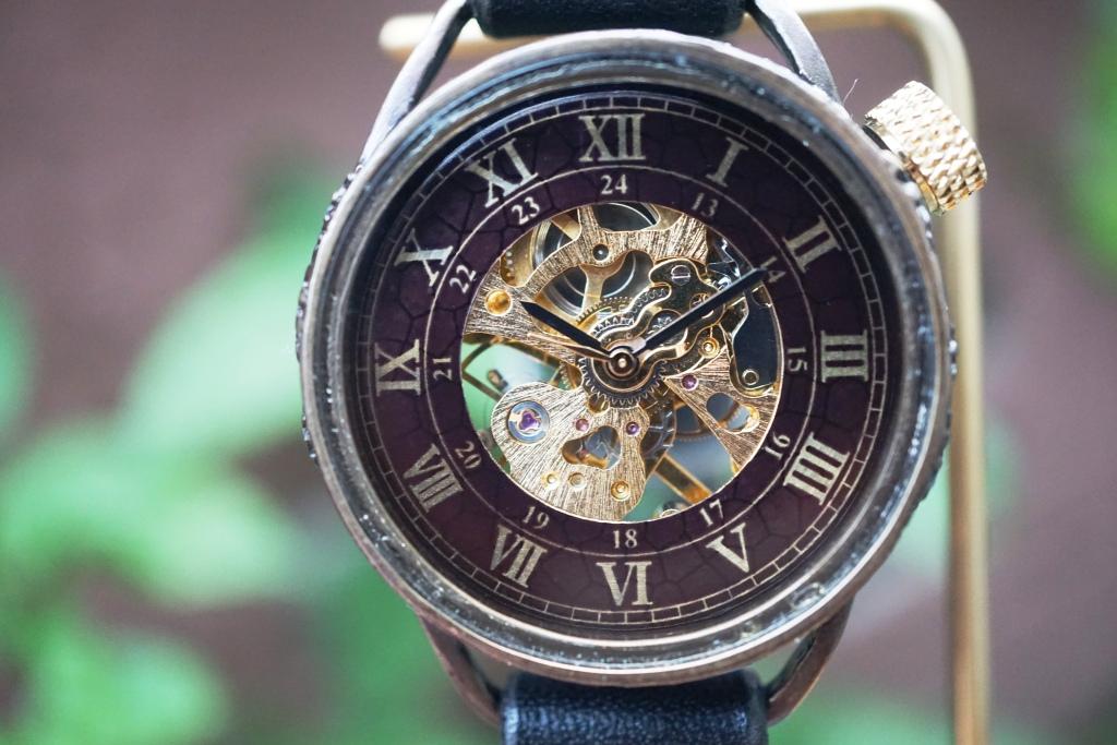 一つ一つ手作りで仕上げた偏光文字盤に機械式ムーブメントを搭載。