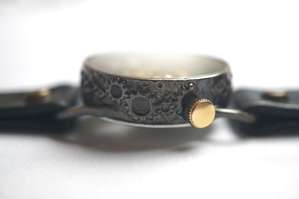 光のあたる角度によって、文字盤の反射角が変わる時計。