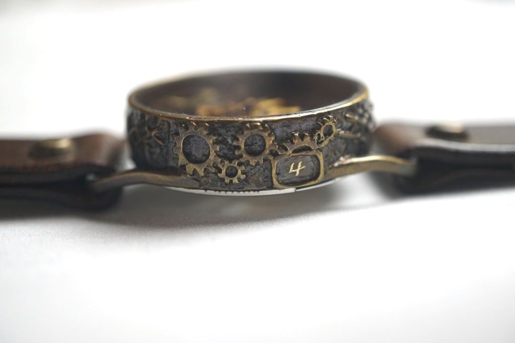 枠のサイドには歯車をデザイン。