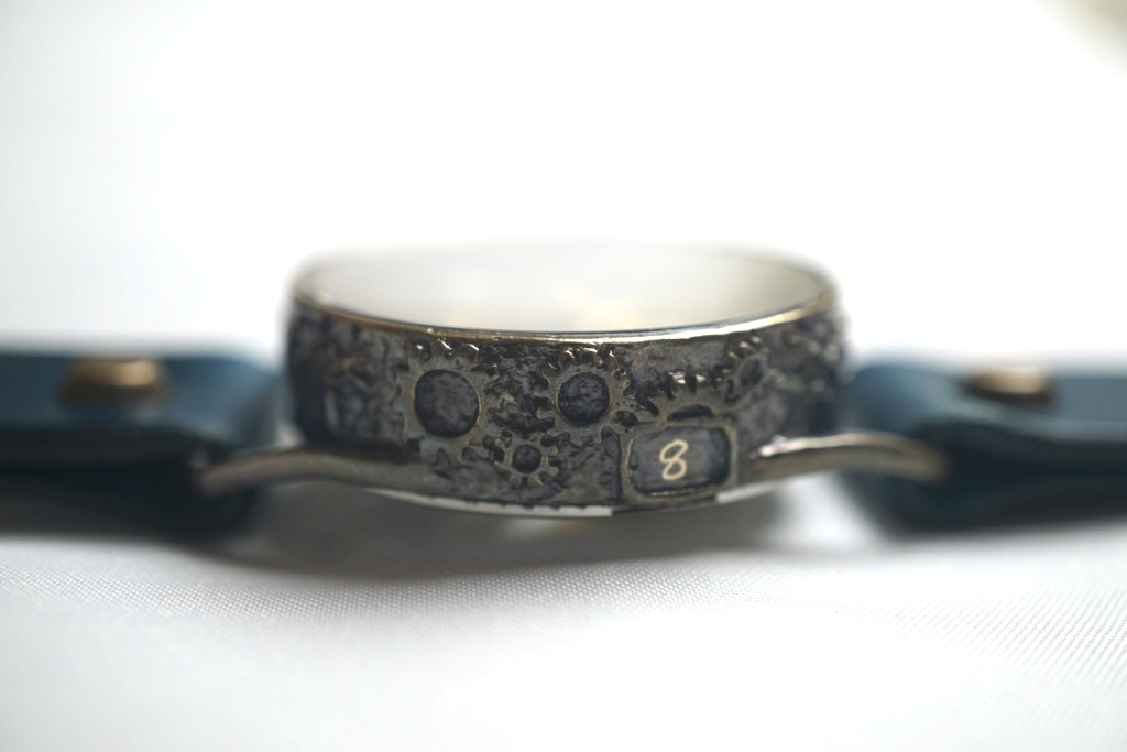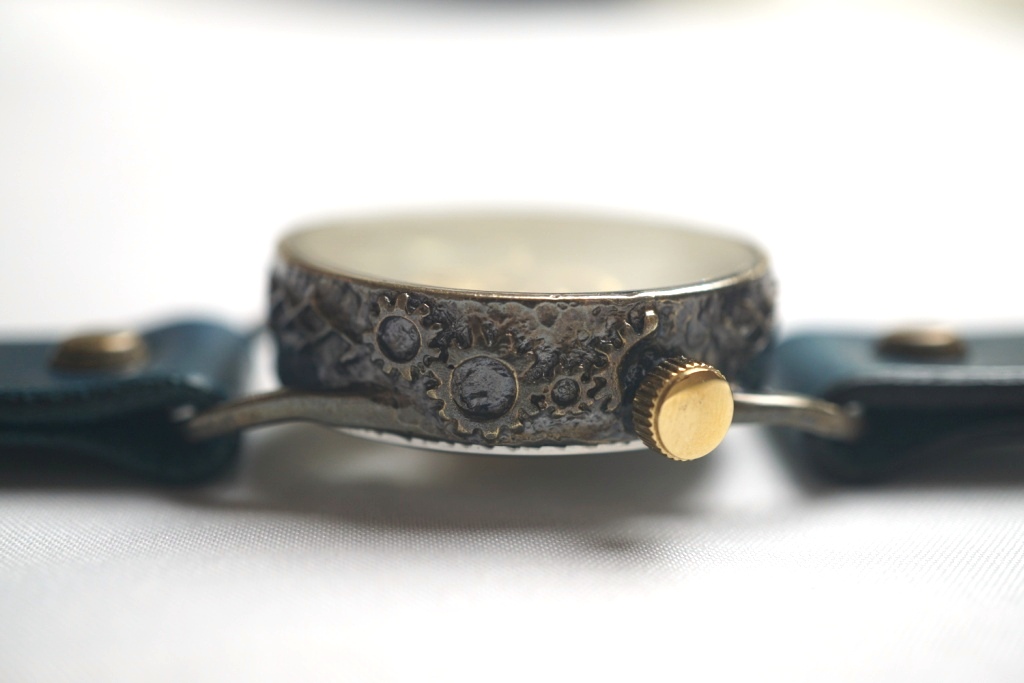 枠のサイドには歯車をデザイン。
