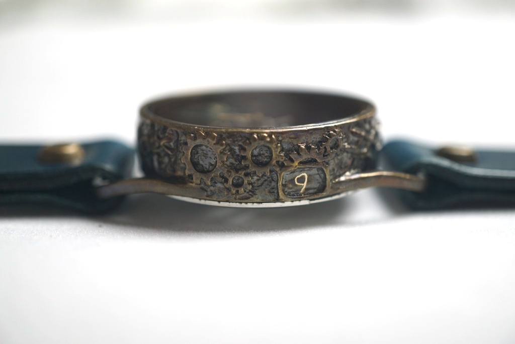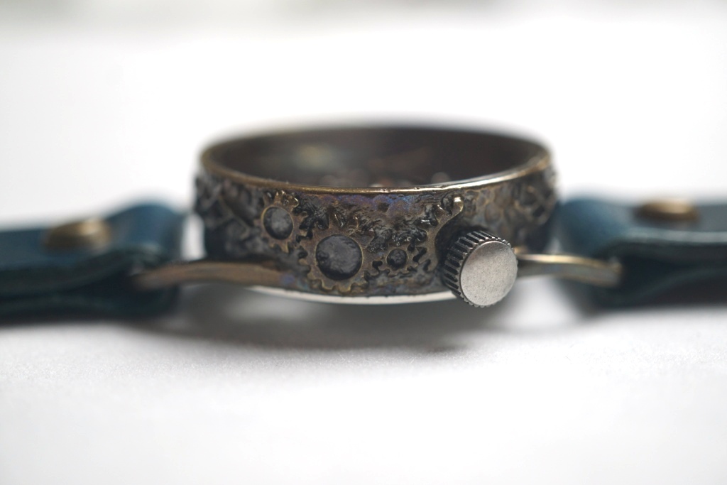 枠のサイドには歯車をデザイン。