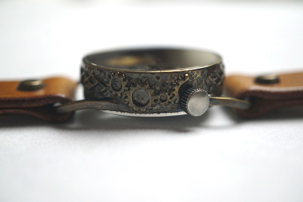 枠のサイドには歯車をデザイン。