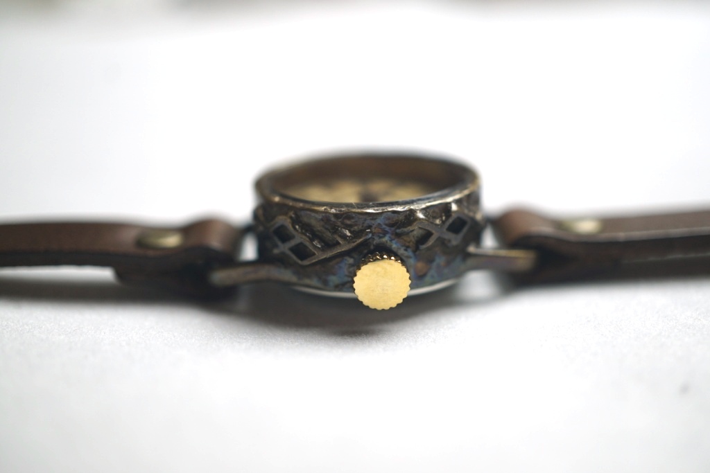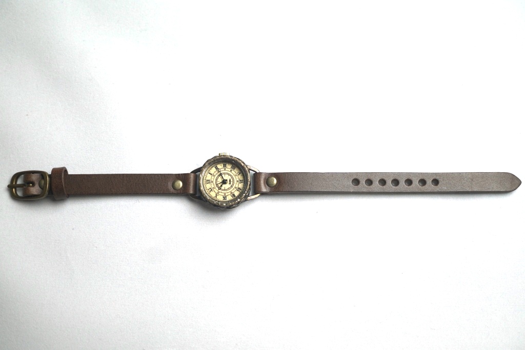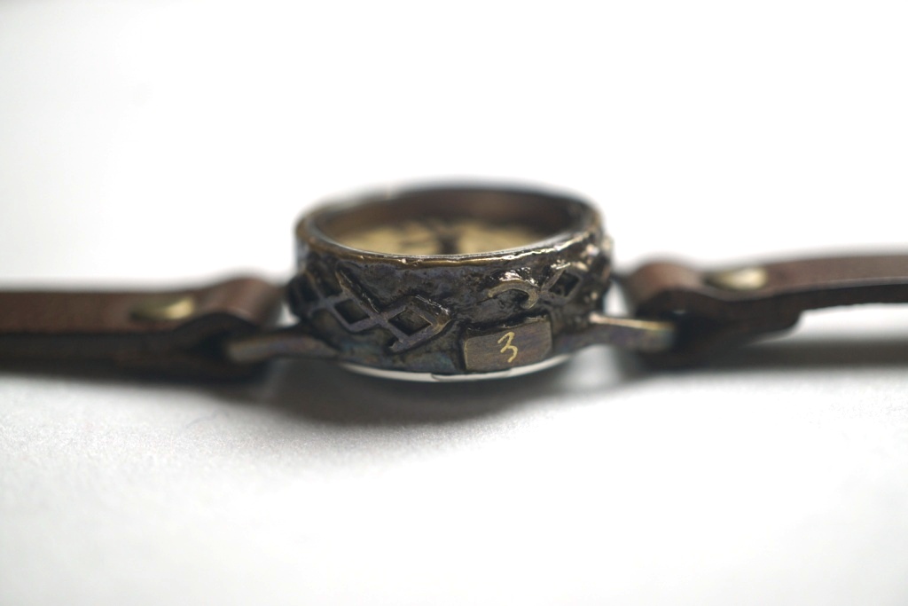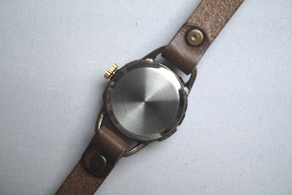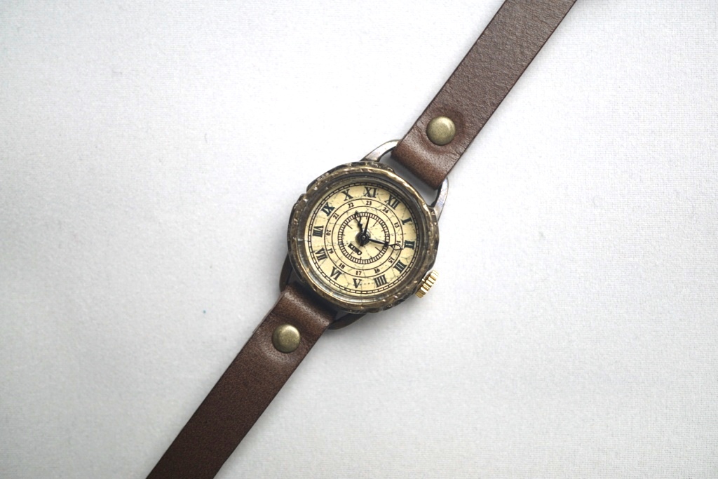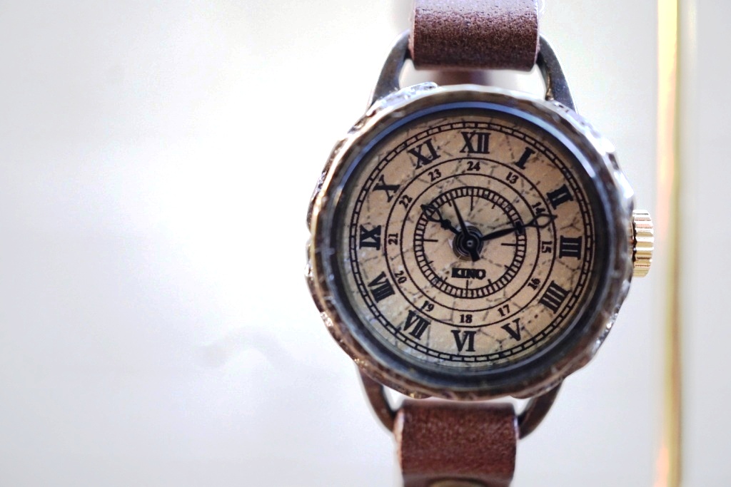 ひび割れた文字盤に、アンティーク調が施された作品です。