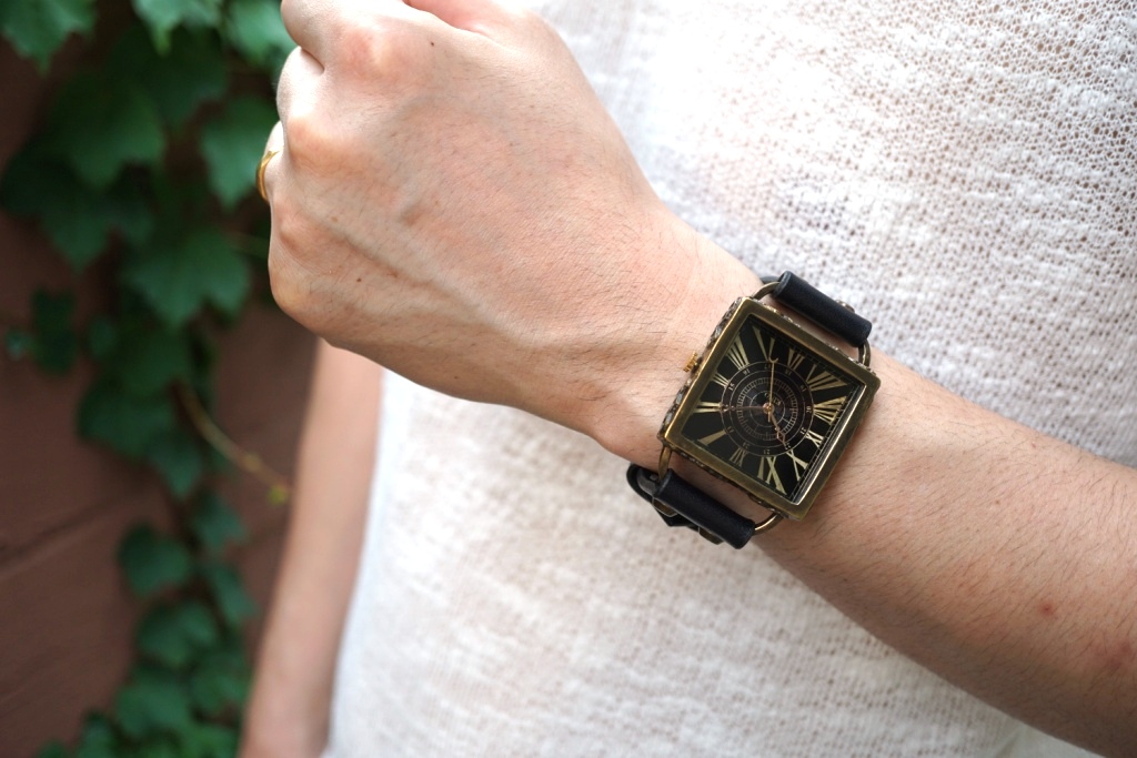 光のあたる角度によって、文字盤の反射角が変わる時計。