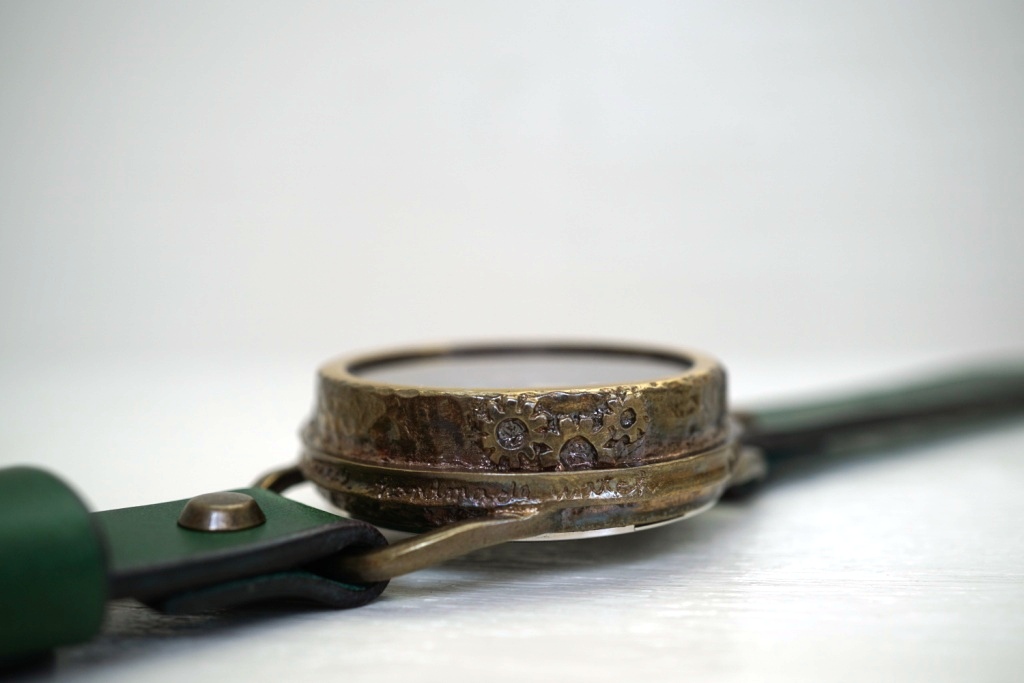 素材 真鍮、 レンズ ガラス、 ベルト イタリア牛革