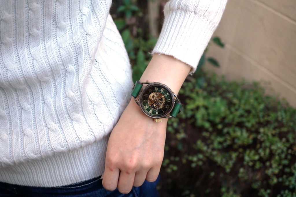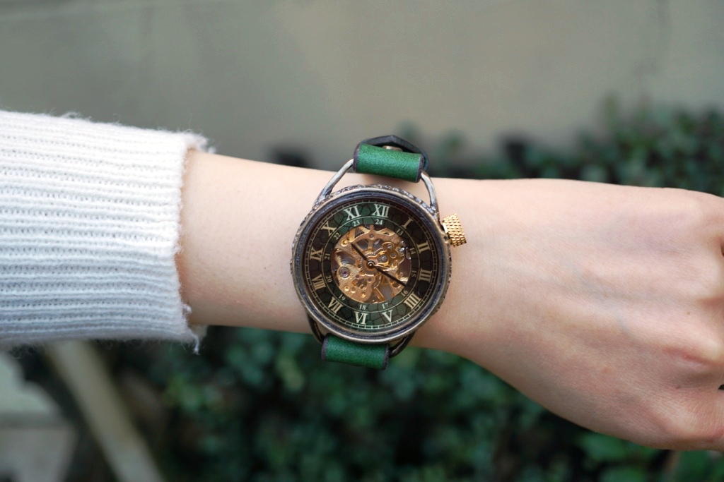 一つ一つ手作りで仕上げた偏光文字盤に機械式ムーブメントを搭載。
