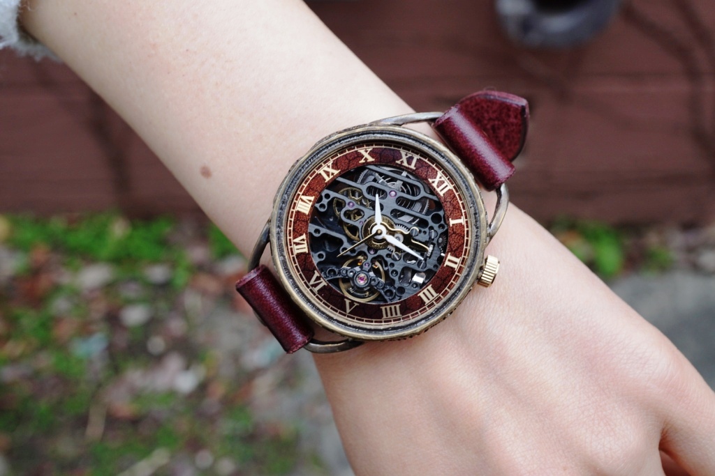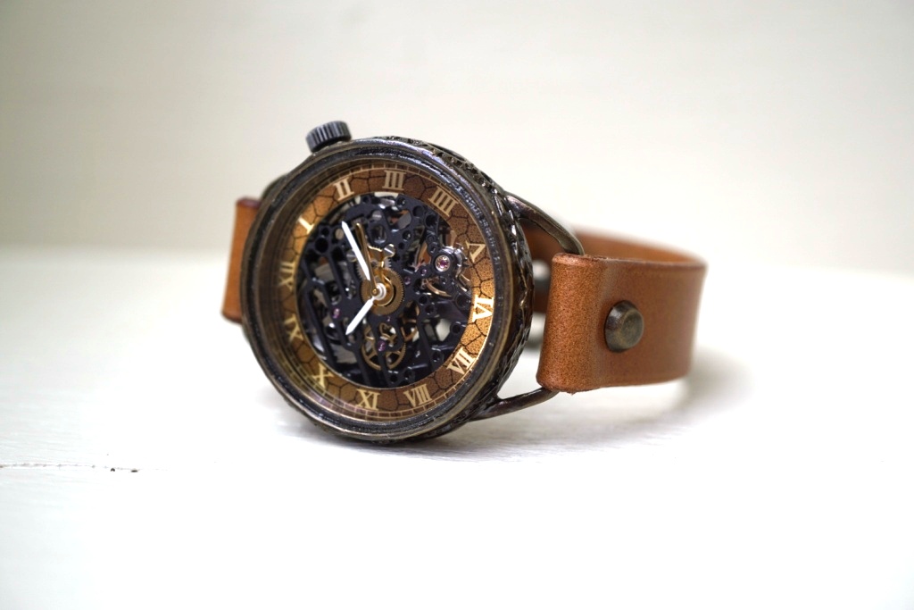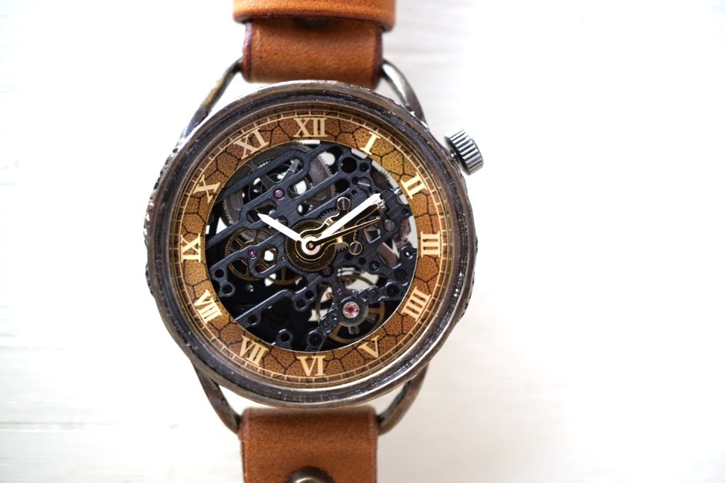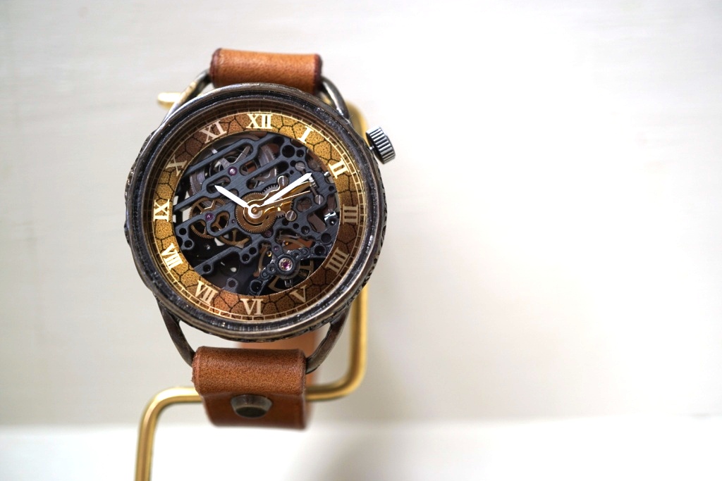 偏光文字盤に機械式ムーブメントを搭載。