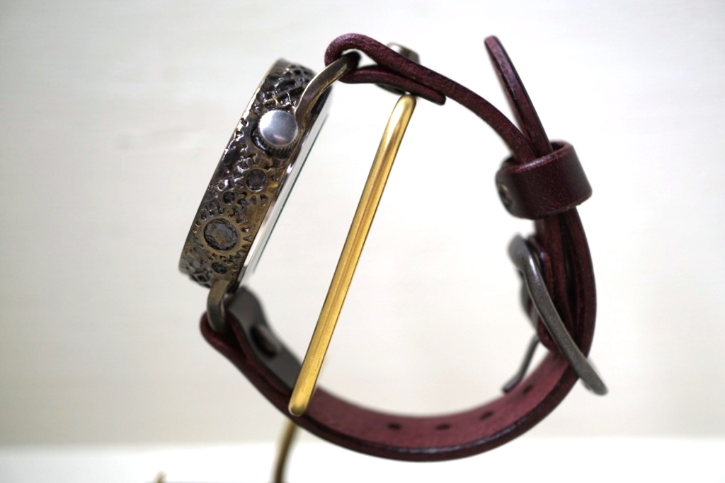 光のあたる角度によって、文字盤の反射角が変わる時計。