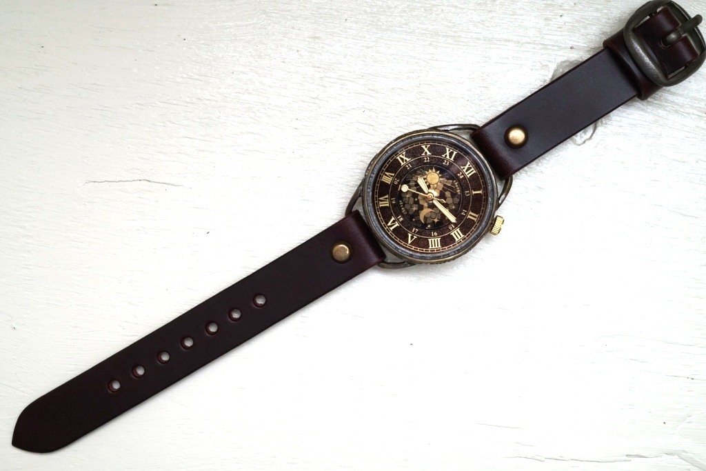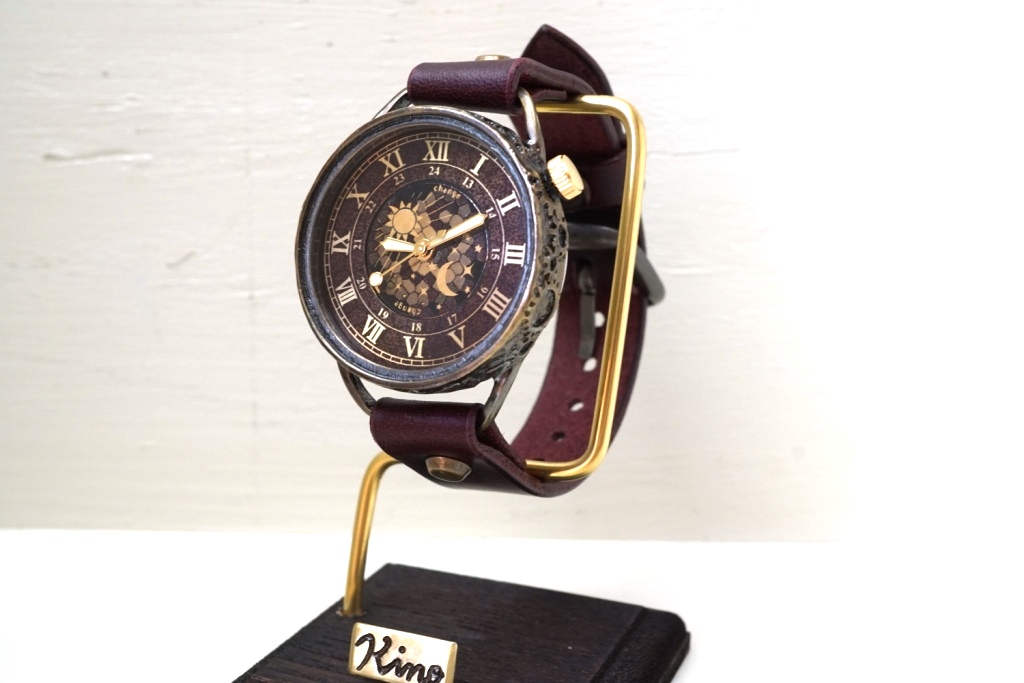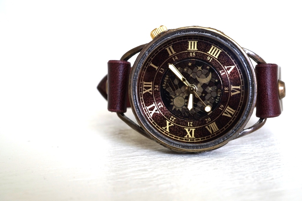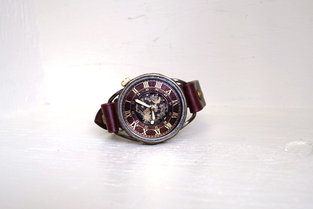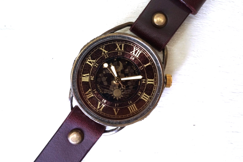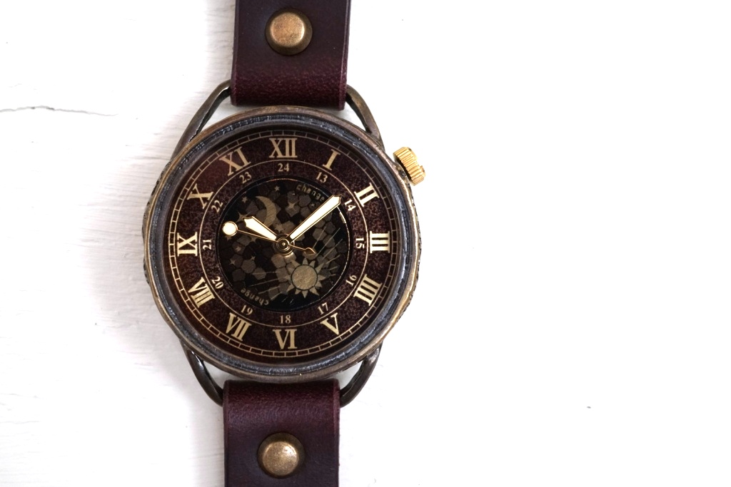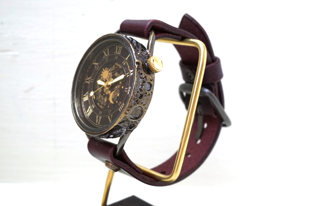 一つ一つ手作りで仕上げた偏光文字盤にサンアンドムーン機能を搭載。