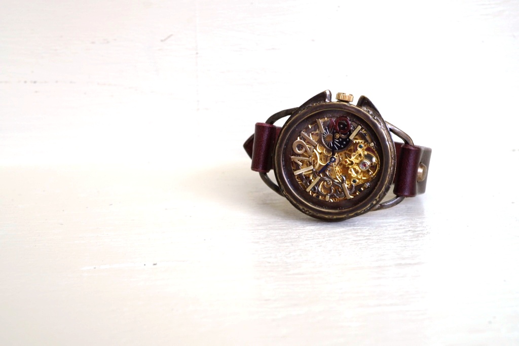 K-14 ナイン AT 真鍮 ワインブラウン 手作り腕時計