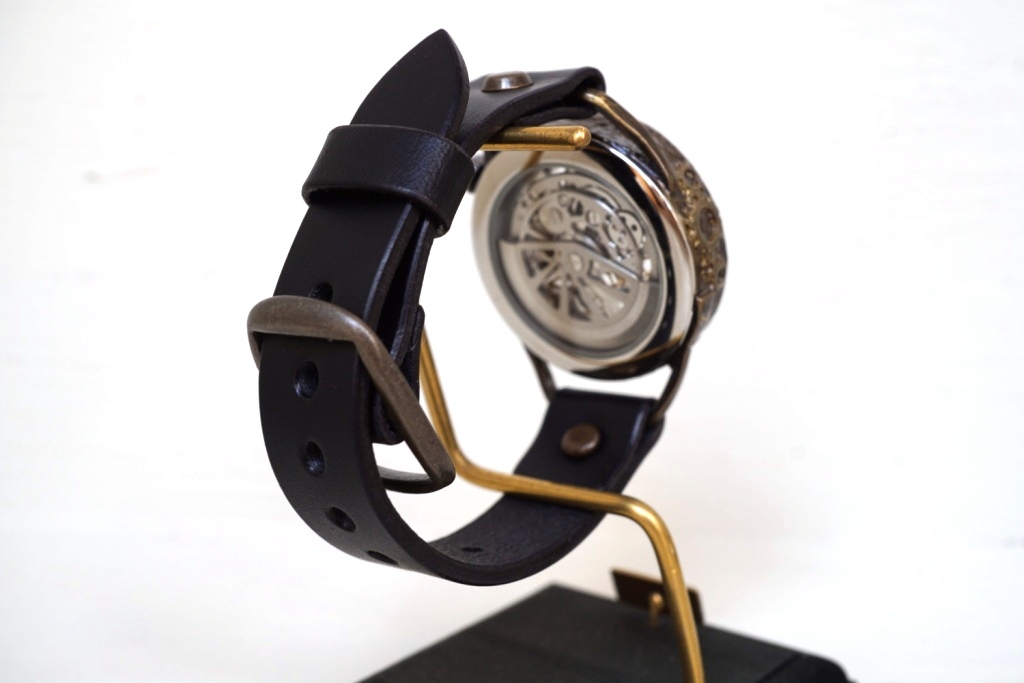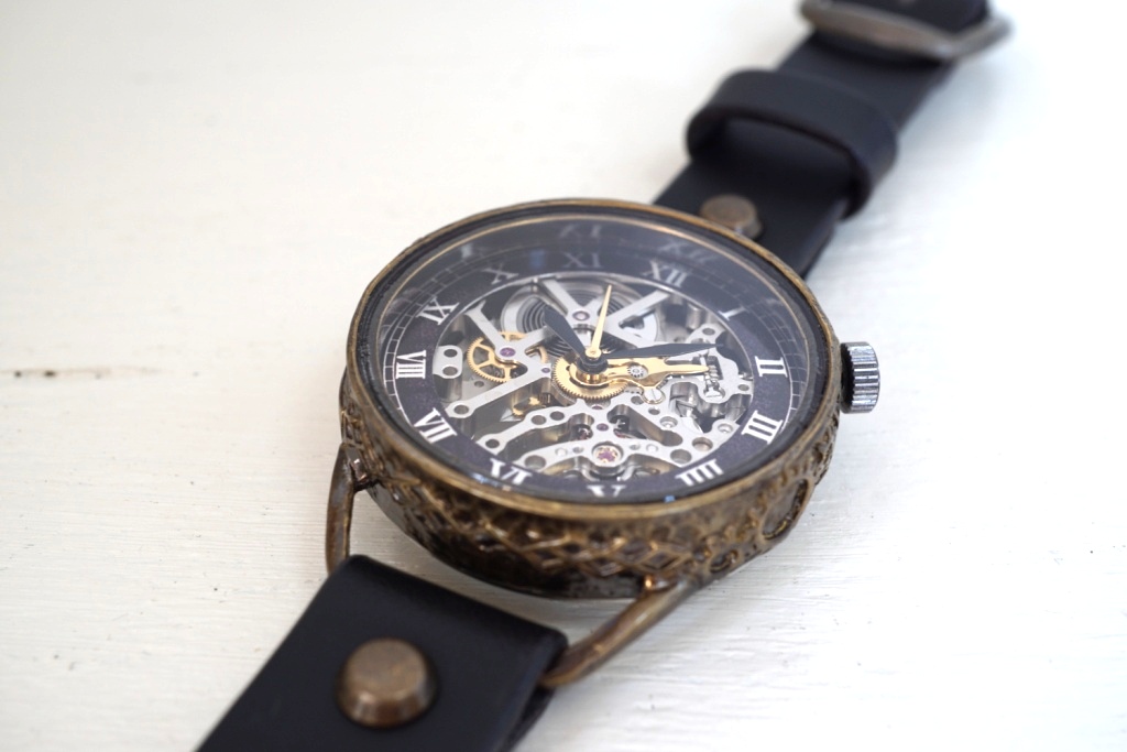 メカニックシルバー AT ブラック 真鍮 手作り腕時計