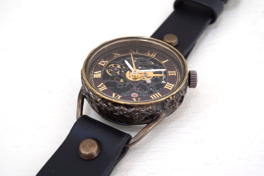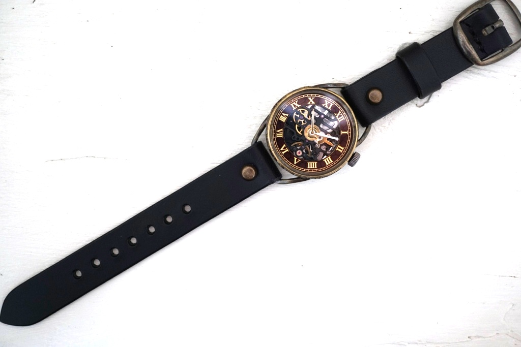 メカニックブラック AT Mサイズ ブラック 真鍮  手作り腕時計