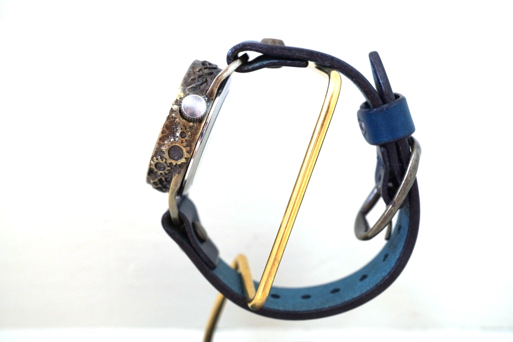 メカニックシルバー AT Mサイズ ブルー 真鍮  手作り腕時計