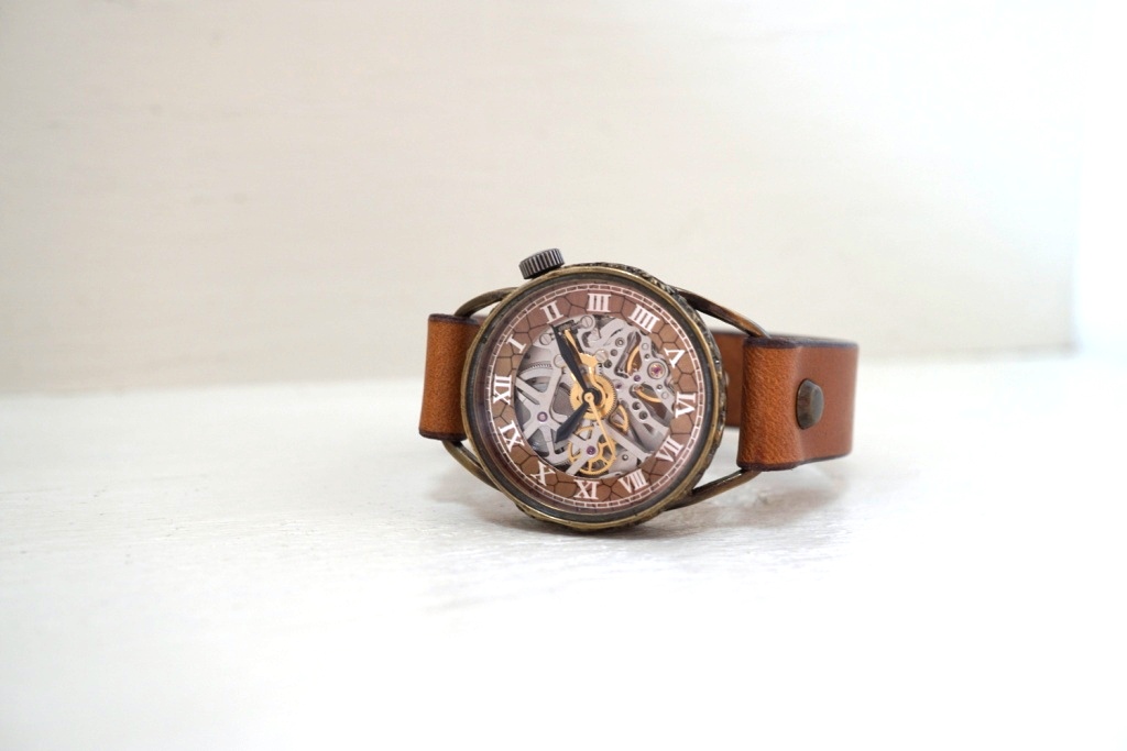 メカニックシルバー AT Mサイズ キャメル 真鍮  手作り腕時計