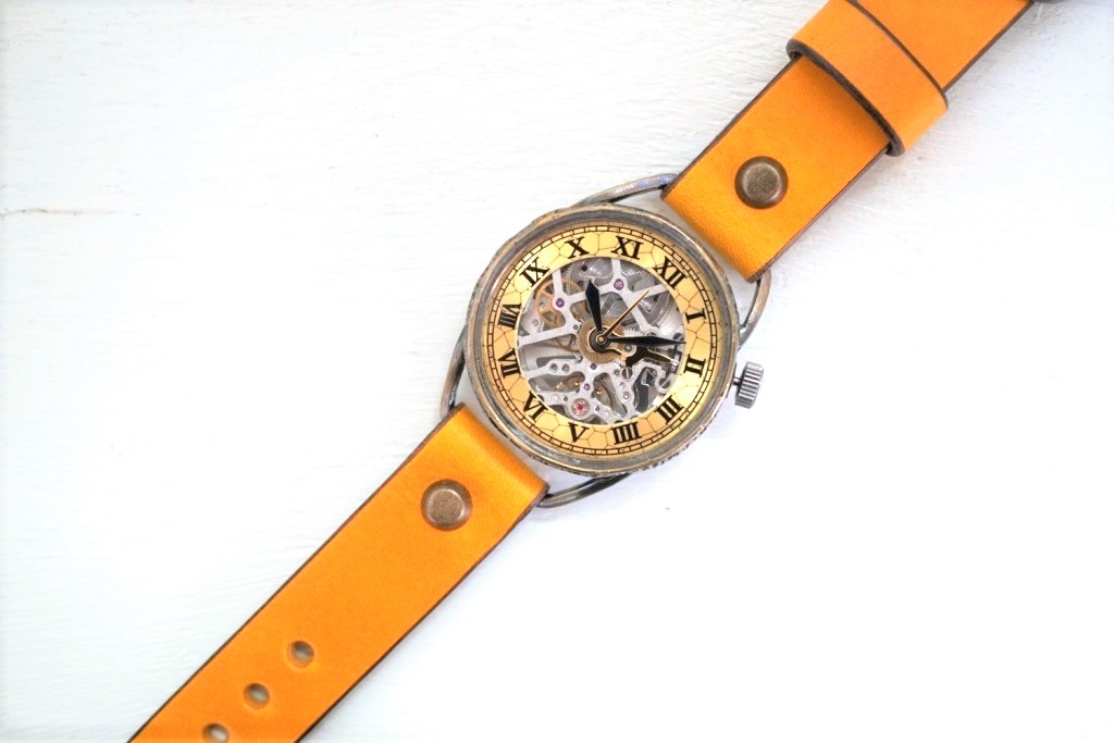 メカニックシルバー AT Mサイズ イエロー 真鍮  手作り腕時計
