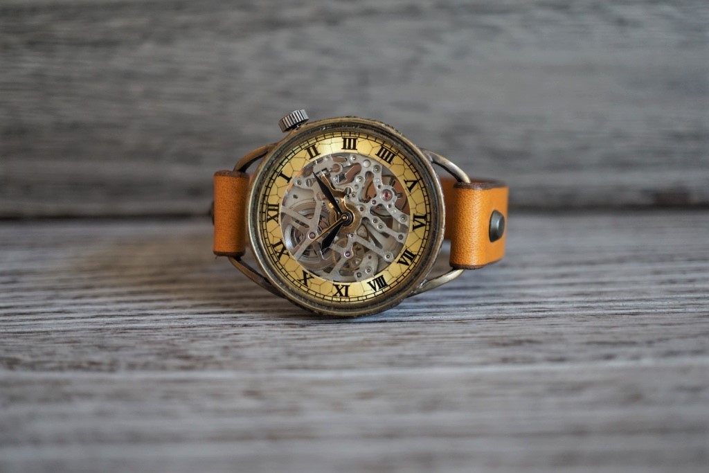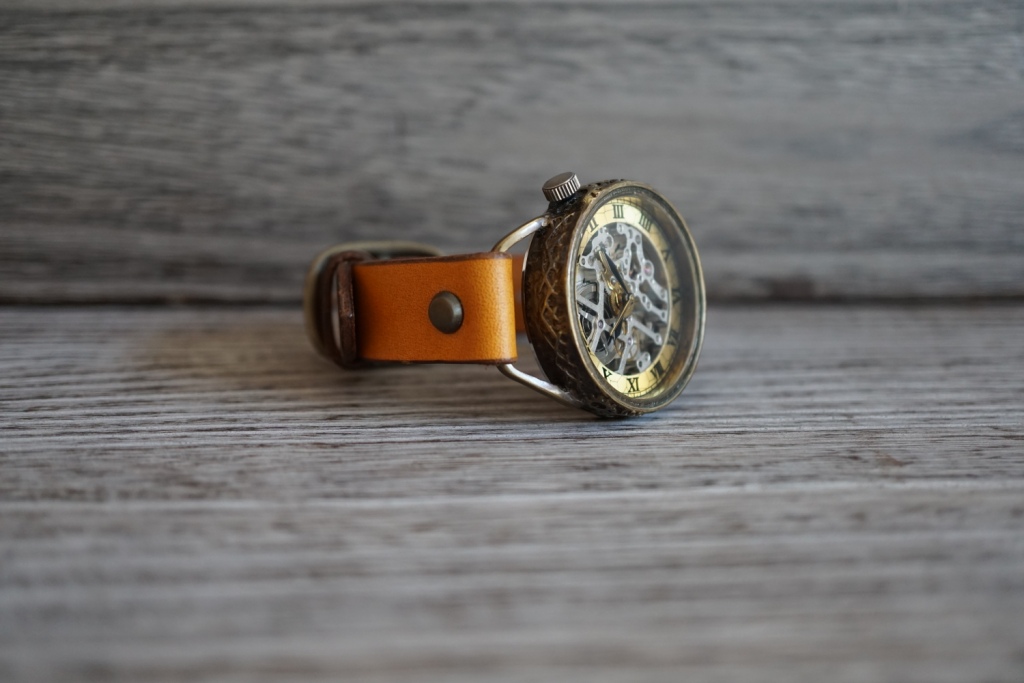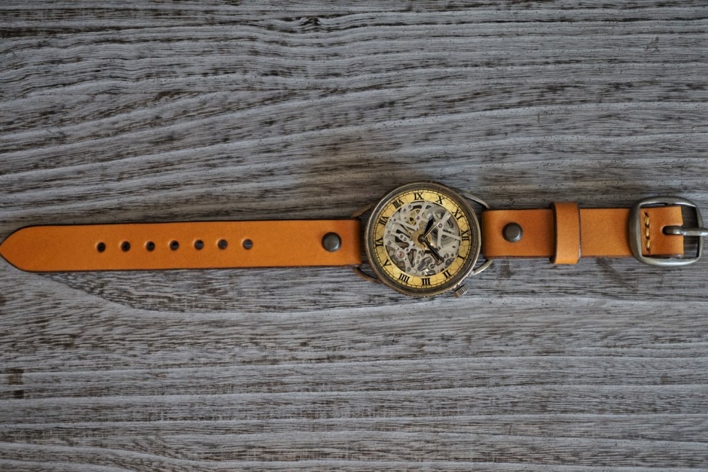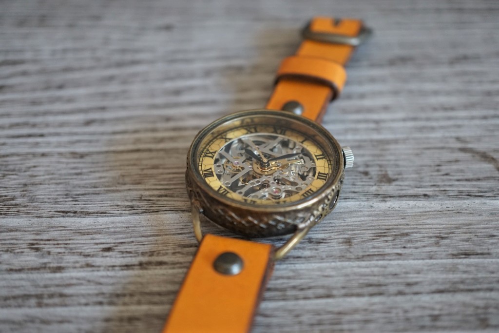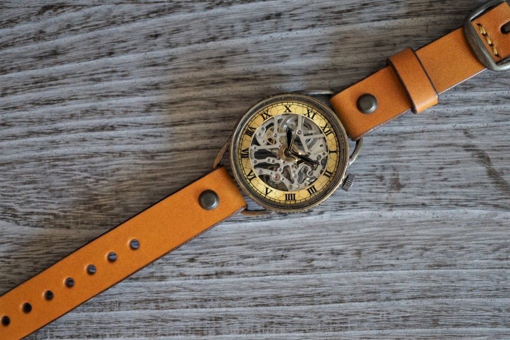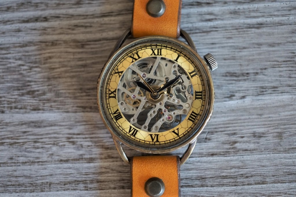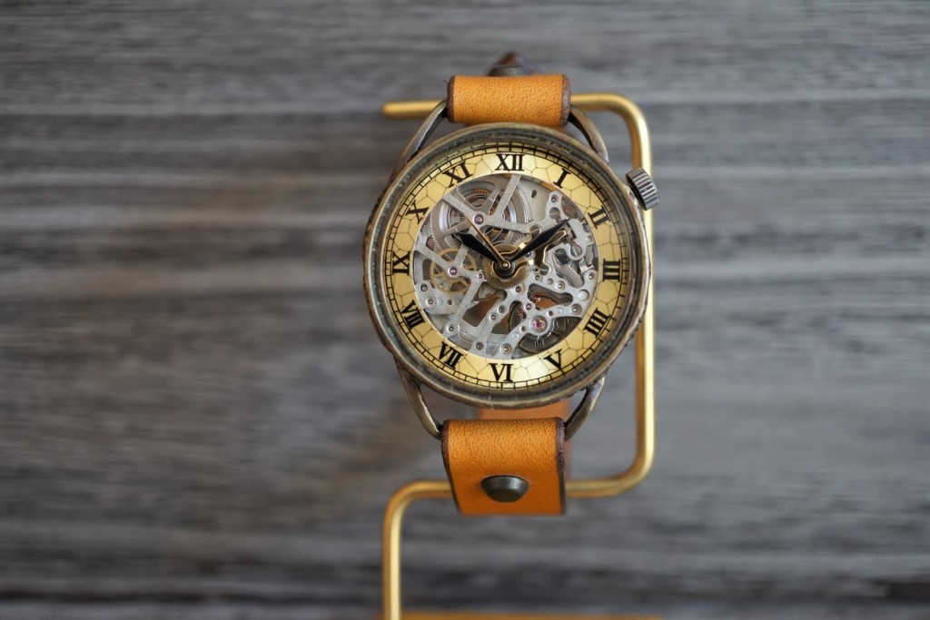 メカニックシルバー AT イエロー 真鍮 手作り腕時計