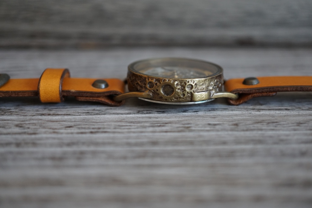 枠のサイドには歯車をデザイン。