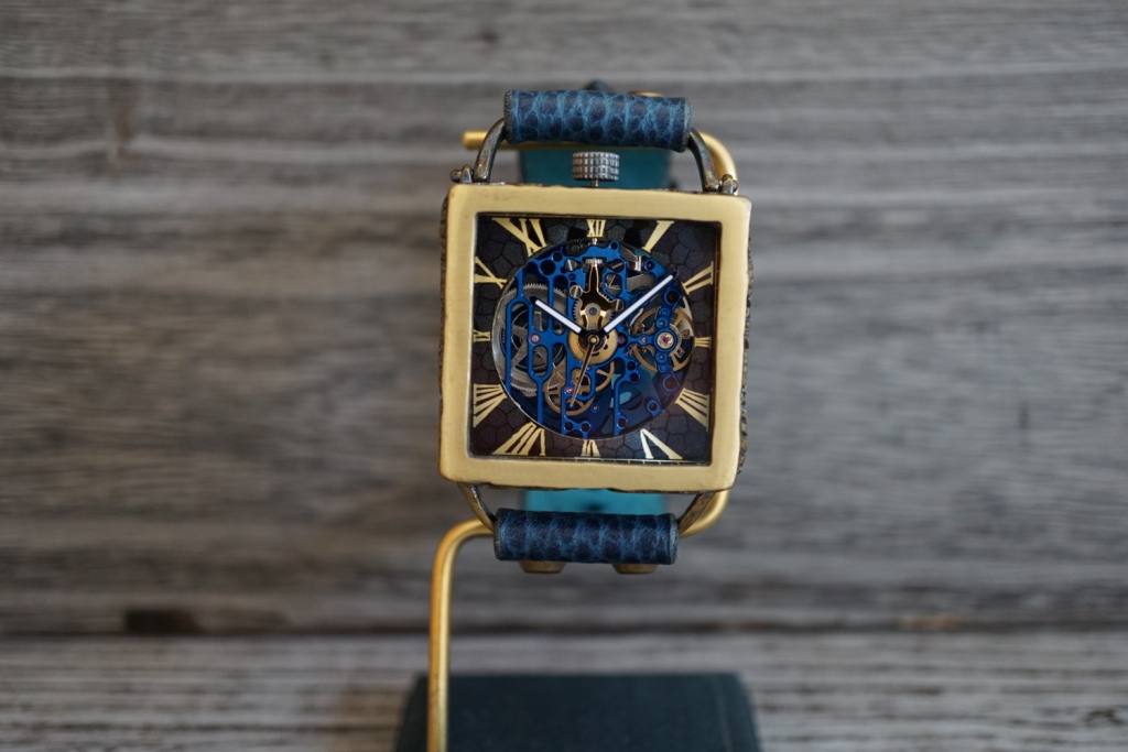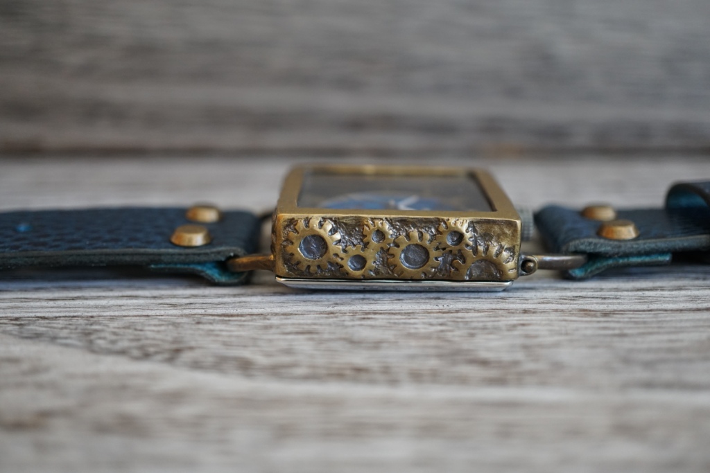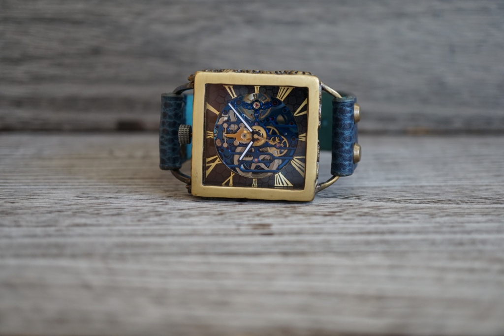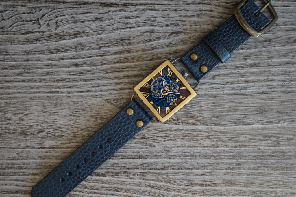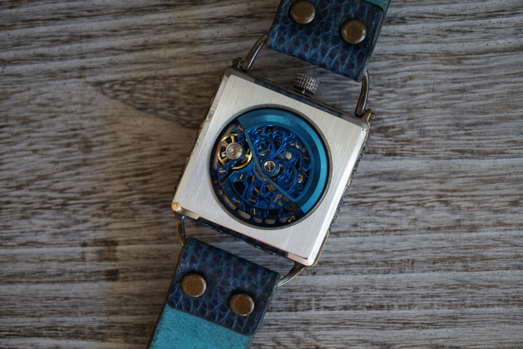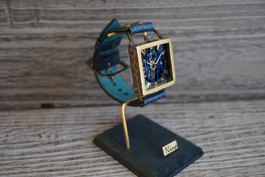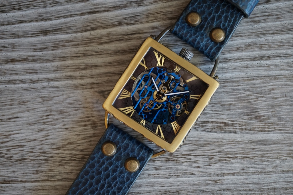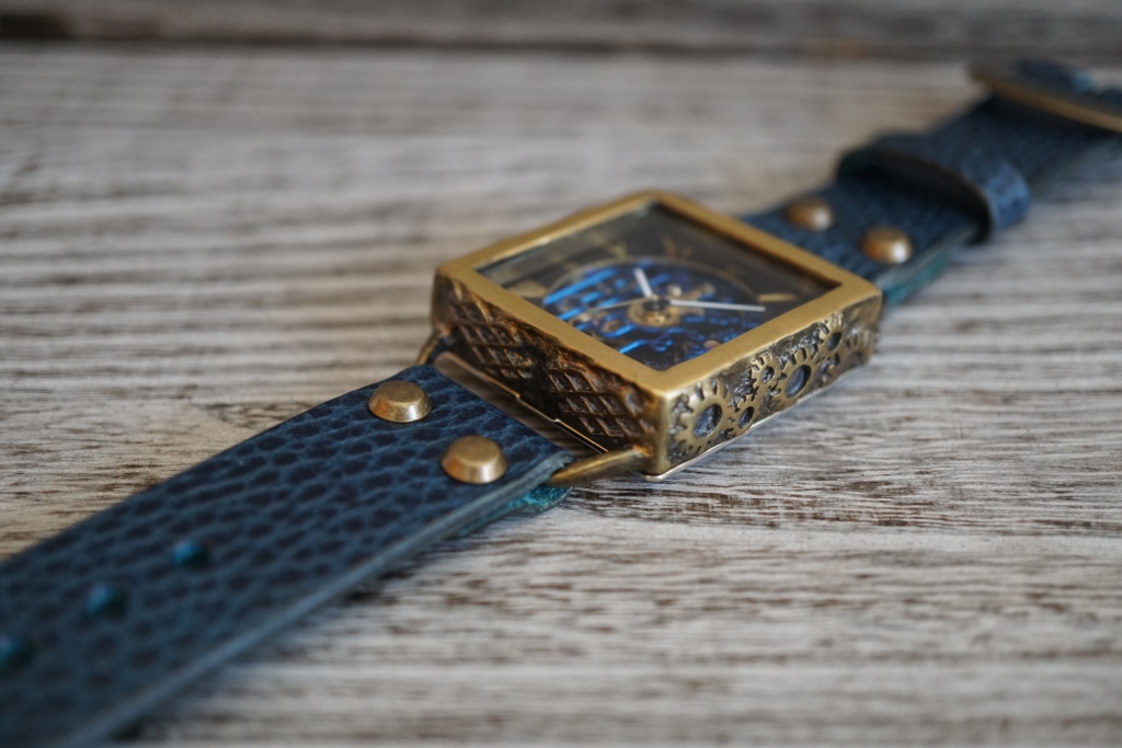 メカニックブルースクエア 真鍮 ブルー 手作り腕時計