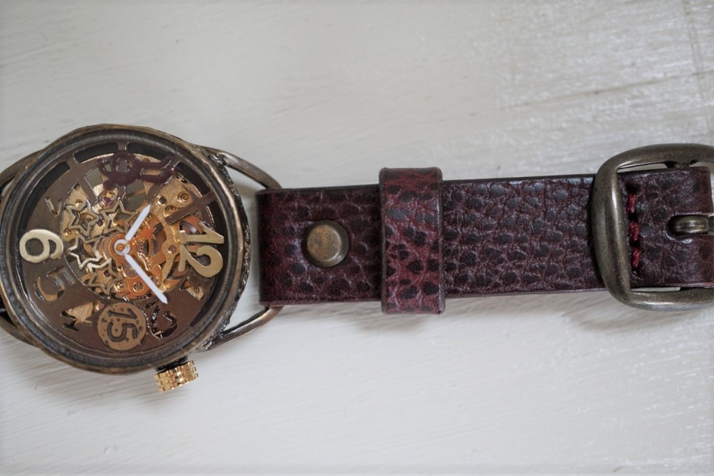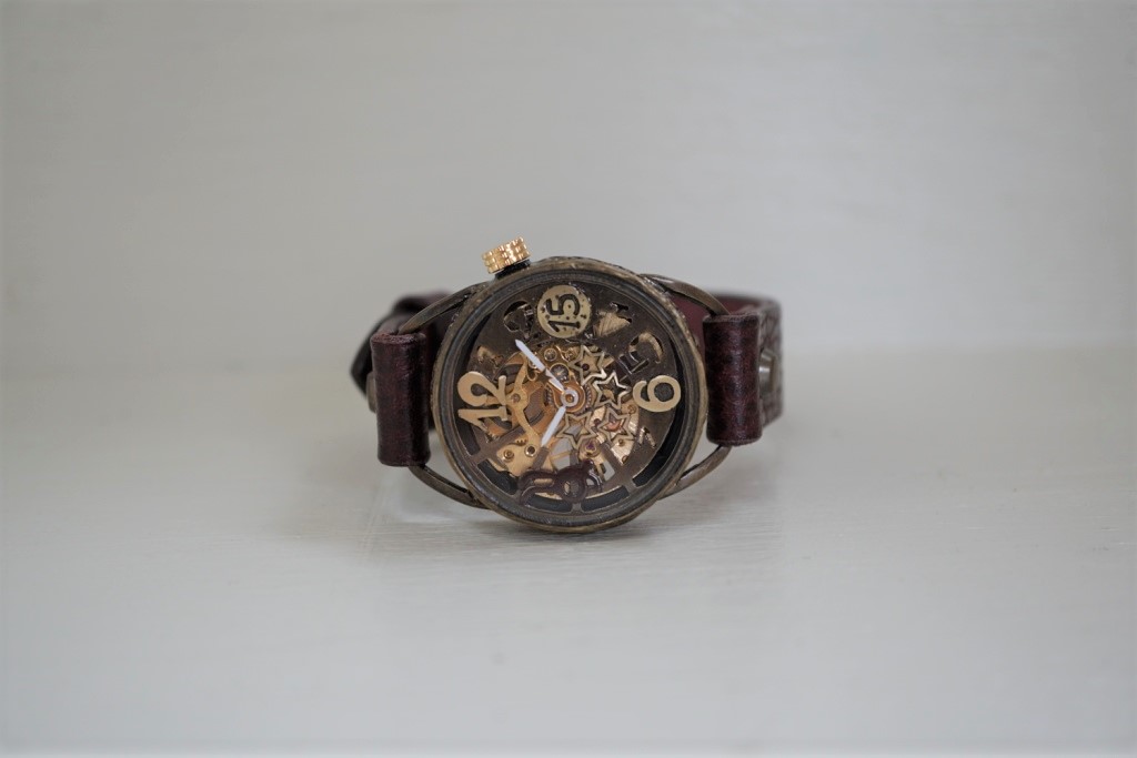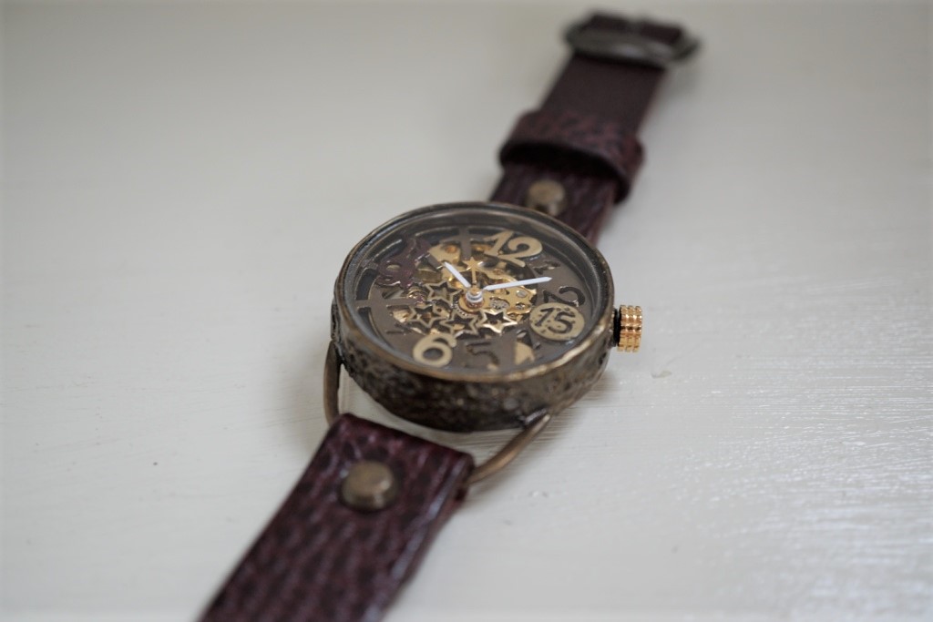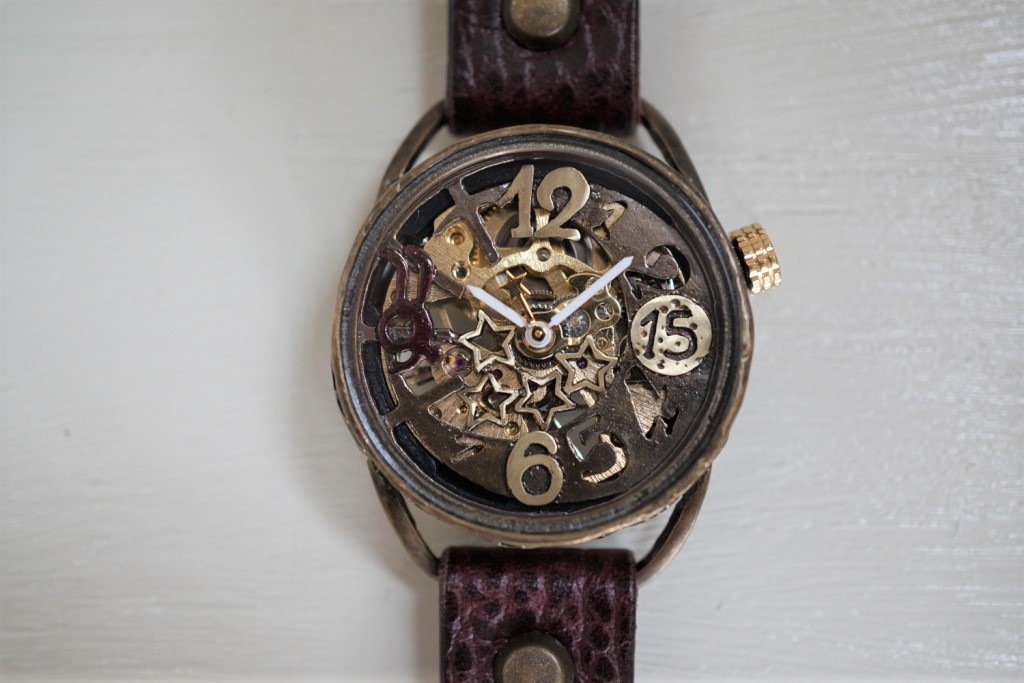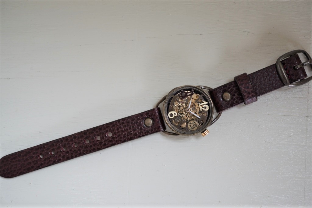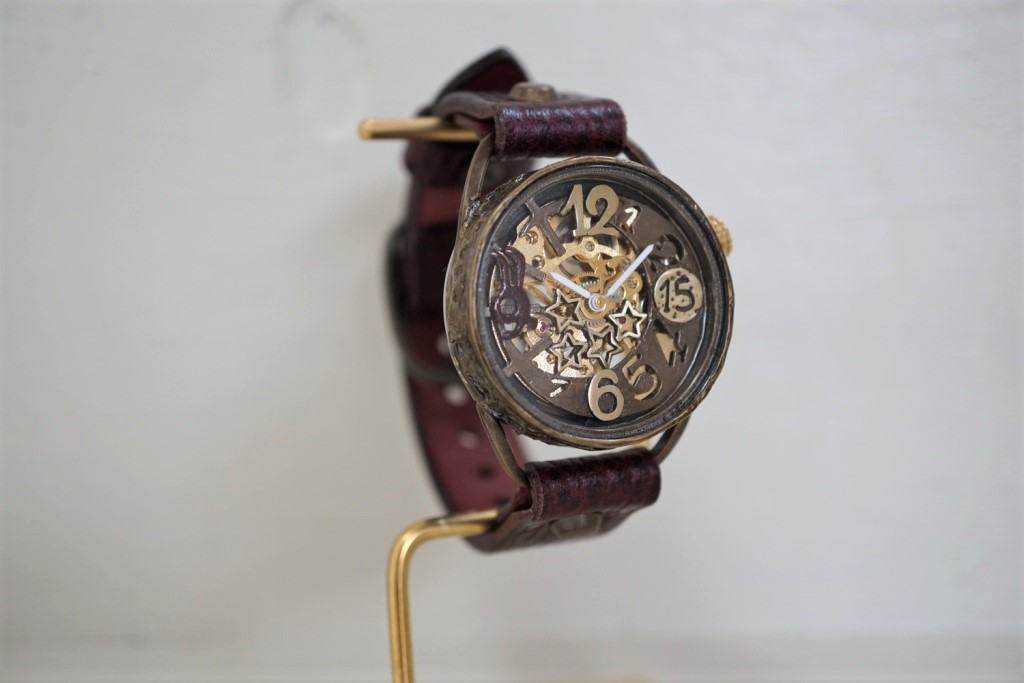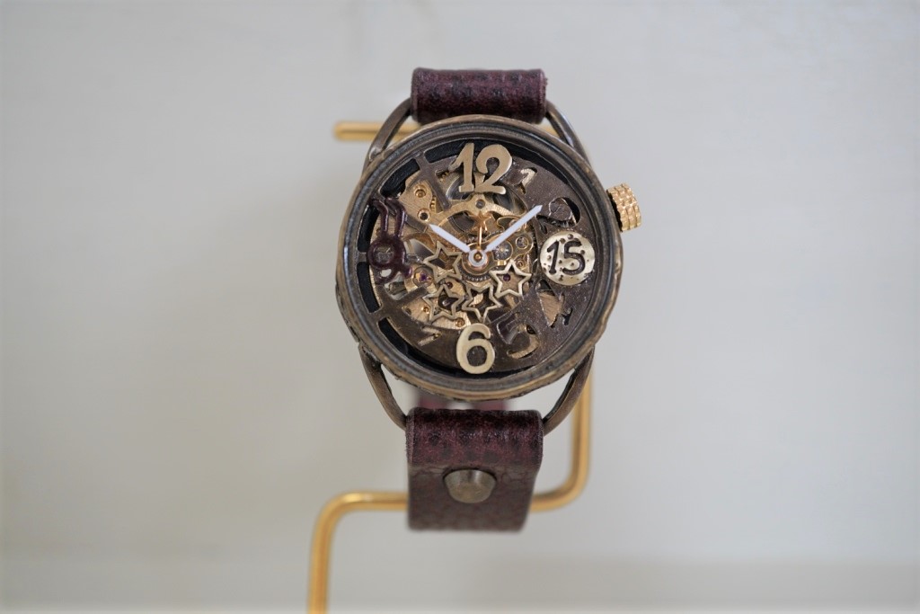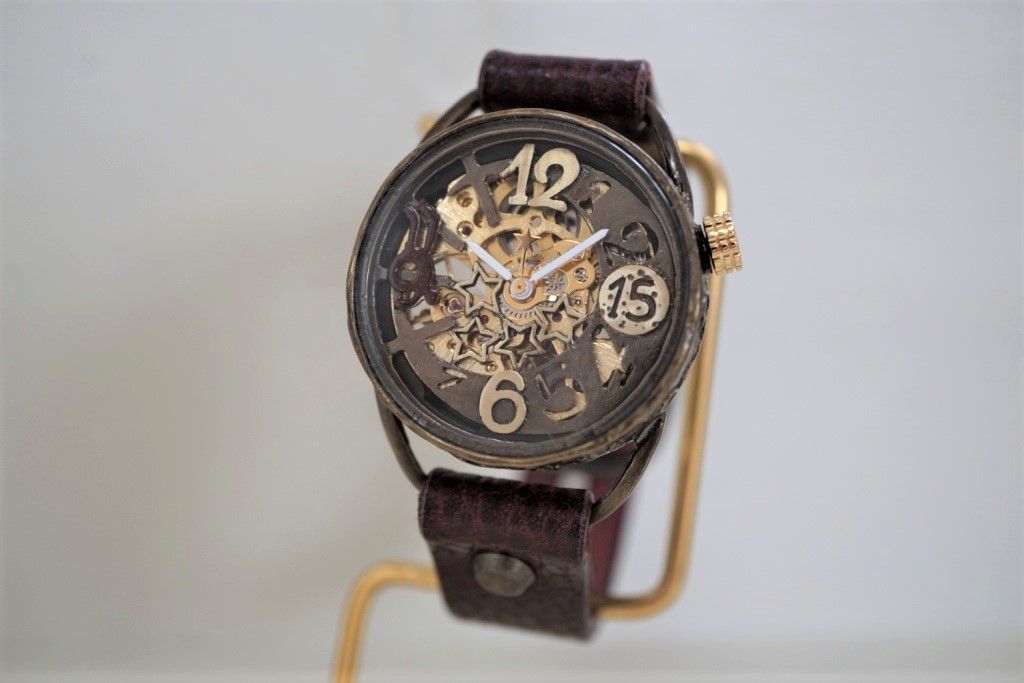 メカピョン MV/GD 真鍮  ワインブラウン 手作り腕時計