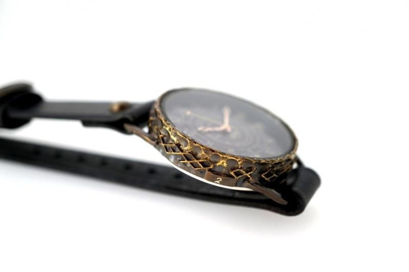 光のあたる角度によって、文字盤の反射角が変わる時計。